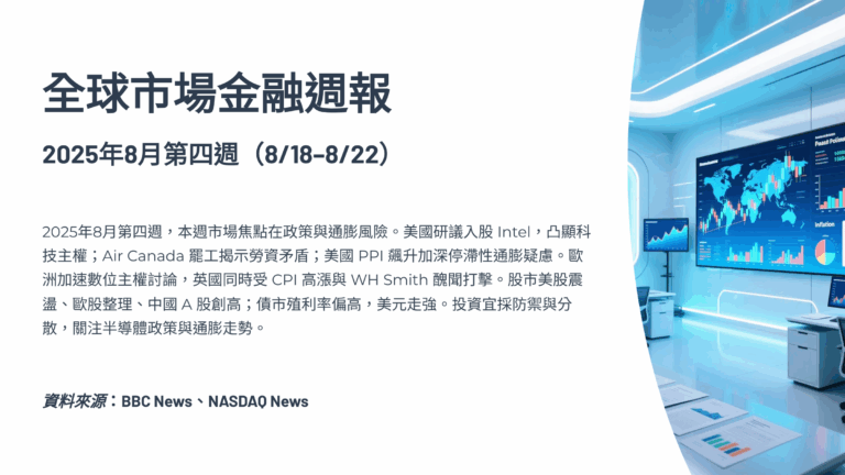 全球市場金融週報 2025年8月第四週(8/18–8/22) 2025年8月第四週,本週市場焦點在政策與通膨風險。美國研…