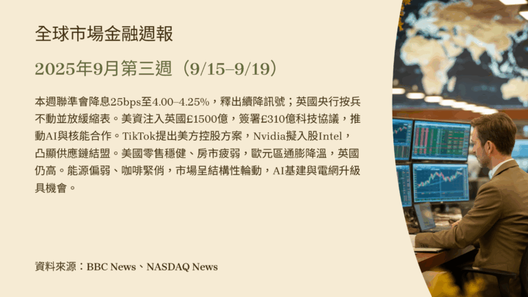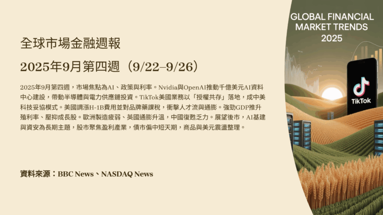 全球市場金融週報 2025年9月第四週(9/22–9/26) 2025年9月第四週,全球市場聚焦AI、政策、利率三大主題。…