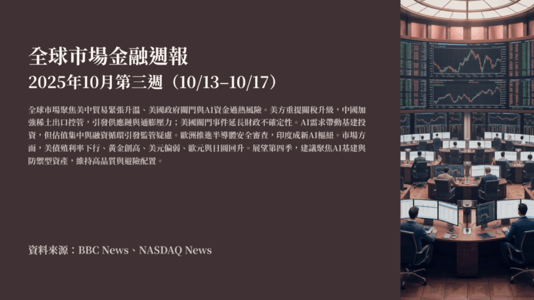 全球市場金融週報 2025年10月第三週(10/13–10/17) 全球市場聚焦美中貿易緊張升溫、美國政府關門與AI資金…