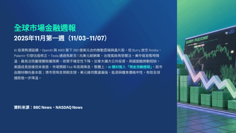 全球市場金融週報 2025年11月第一週(11/03–11/07) AI 投資熱潮延續,OpenAI 與 AWS 簽下 380 億美元合約…